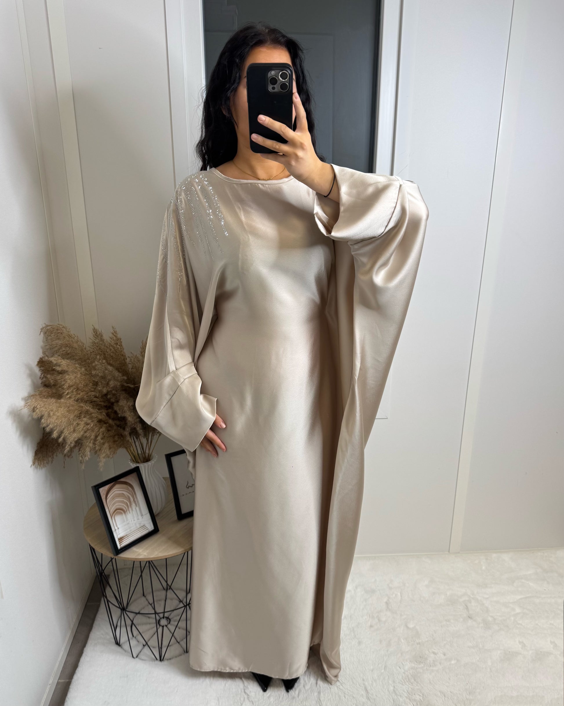 Abaya strass Tesnim beige