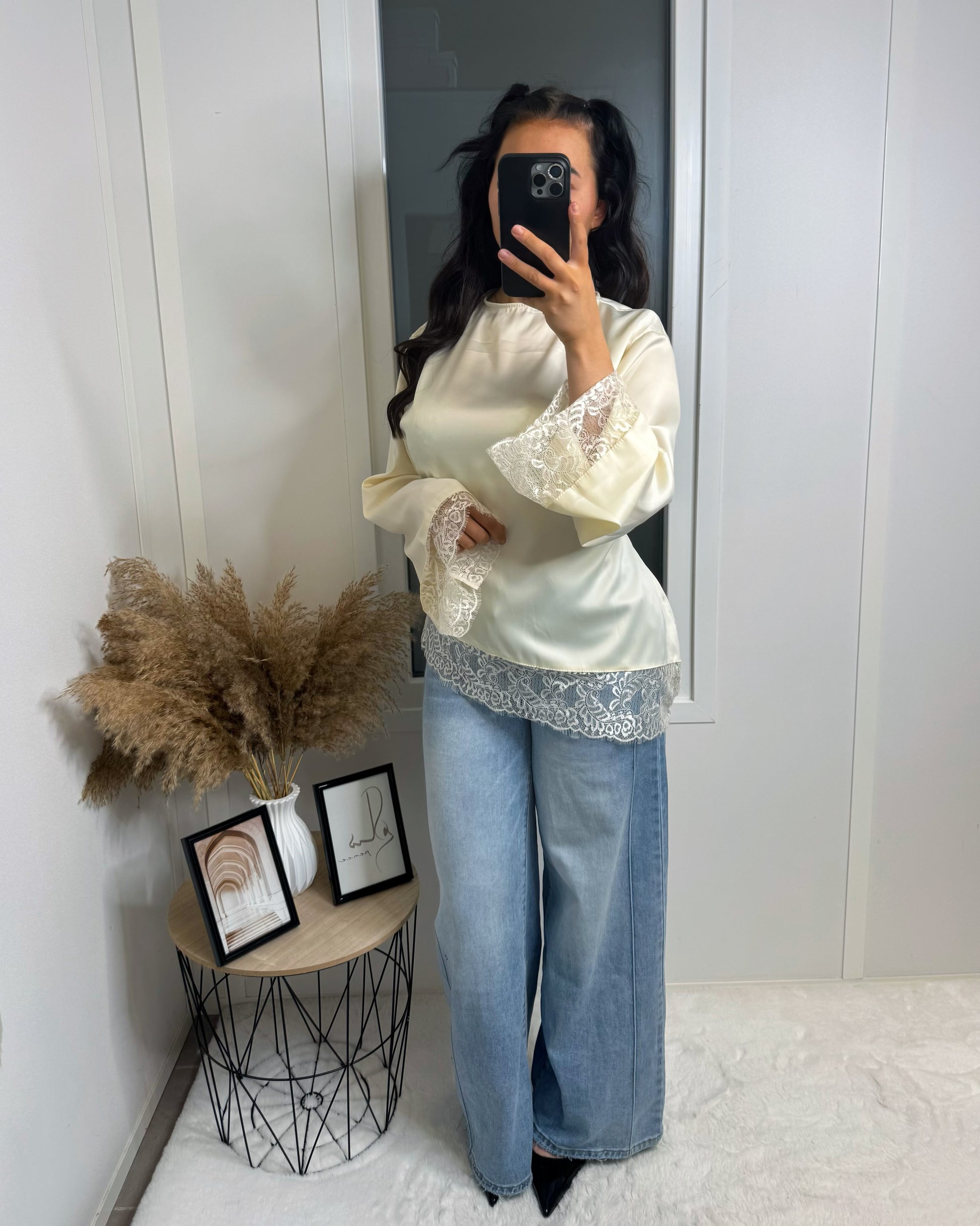 Le top dentelle allie élégance et confort avec sa coupe cintrée à l'arrière. Les détails en dentelle au niveau des manches et du bas ajoutent une touche féminine et délicate, parfait pour sublimer n'importe quelle tenue. Idéal pour des soirées ou des occasions spéciales.
