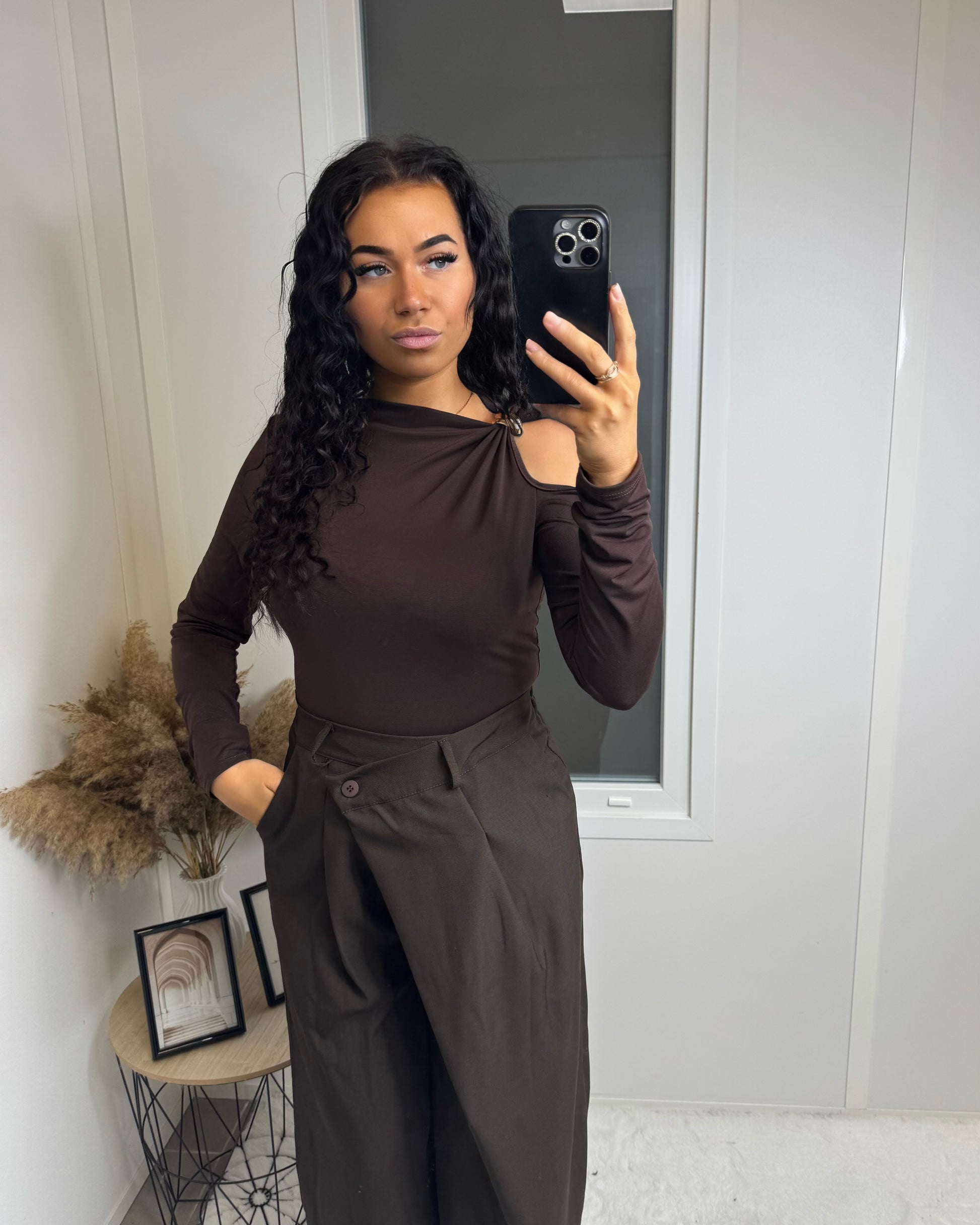 Le modèle mesure 1m58 et porte une taille S.